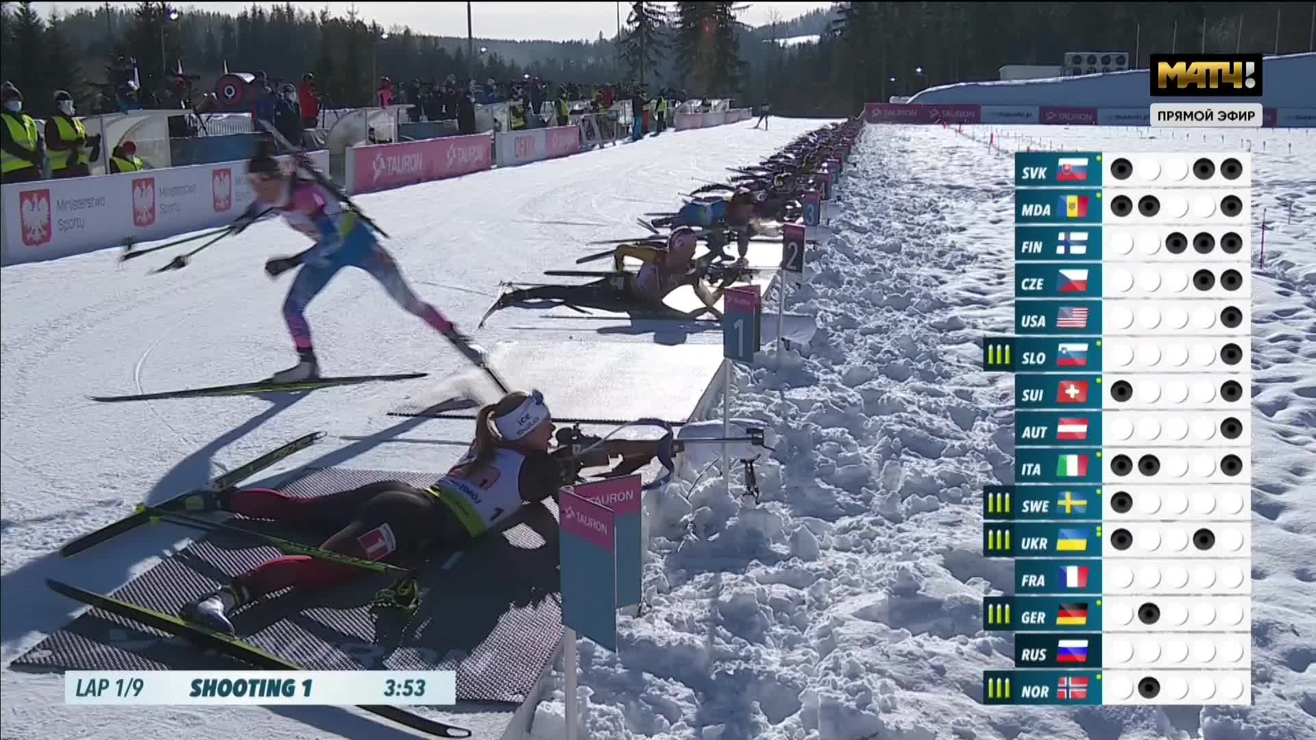 Чемпионат Европы. Индивидуальная смешанная эстафета. Первый огневой рубеж