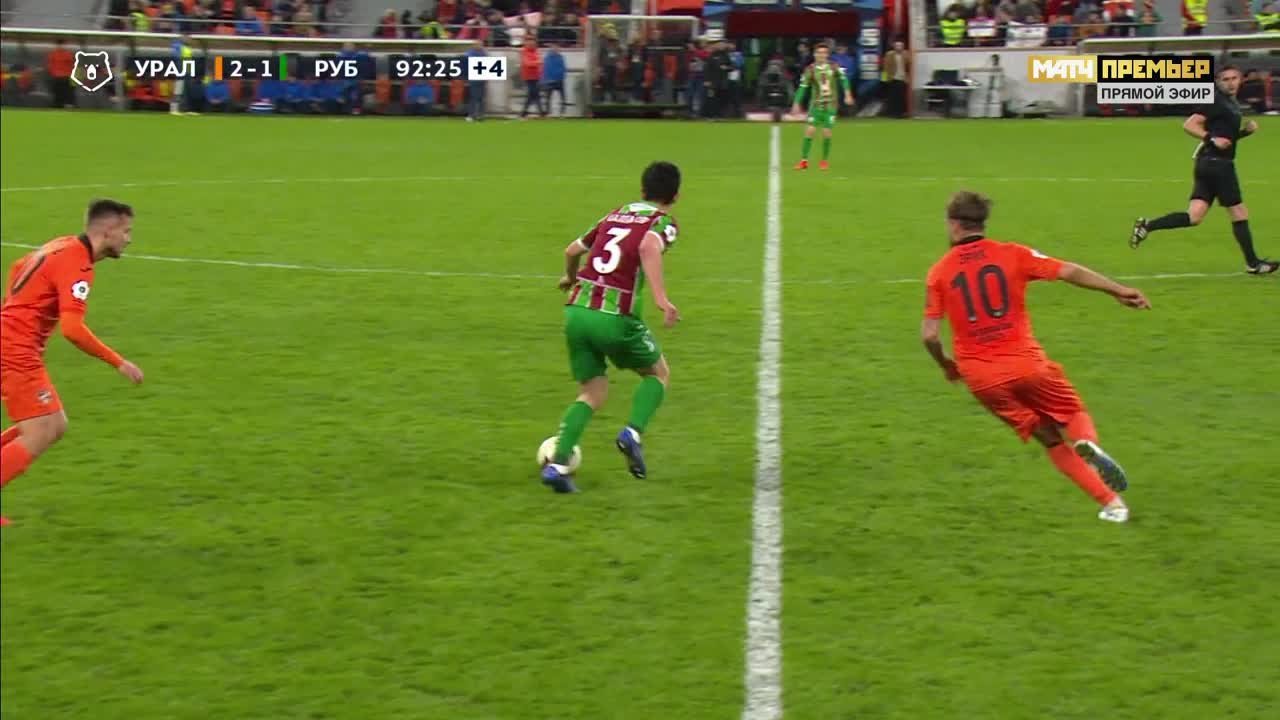 Урал - Рубин. Димитров наносит удар из убойной позиции