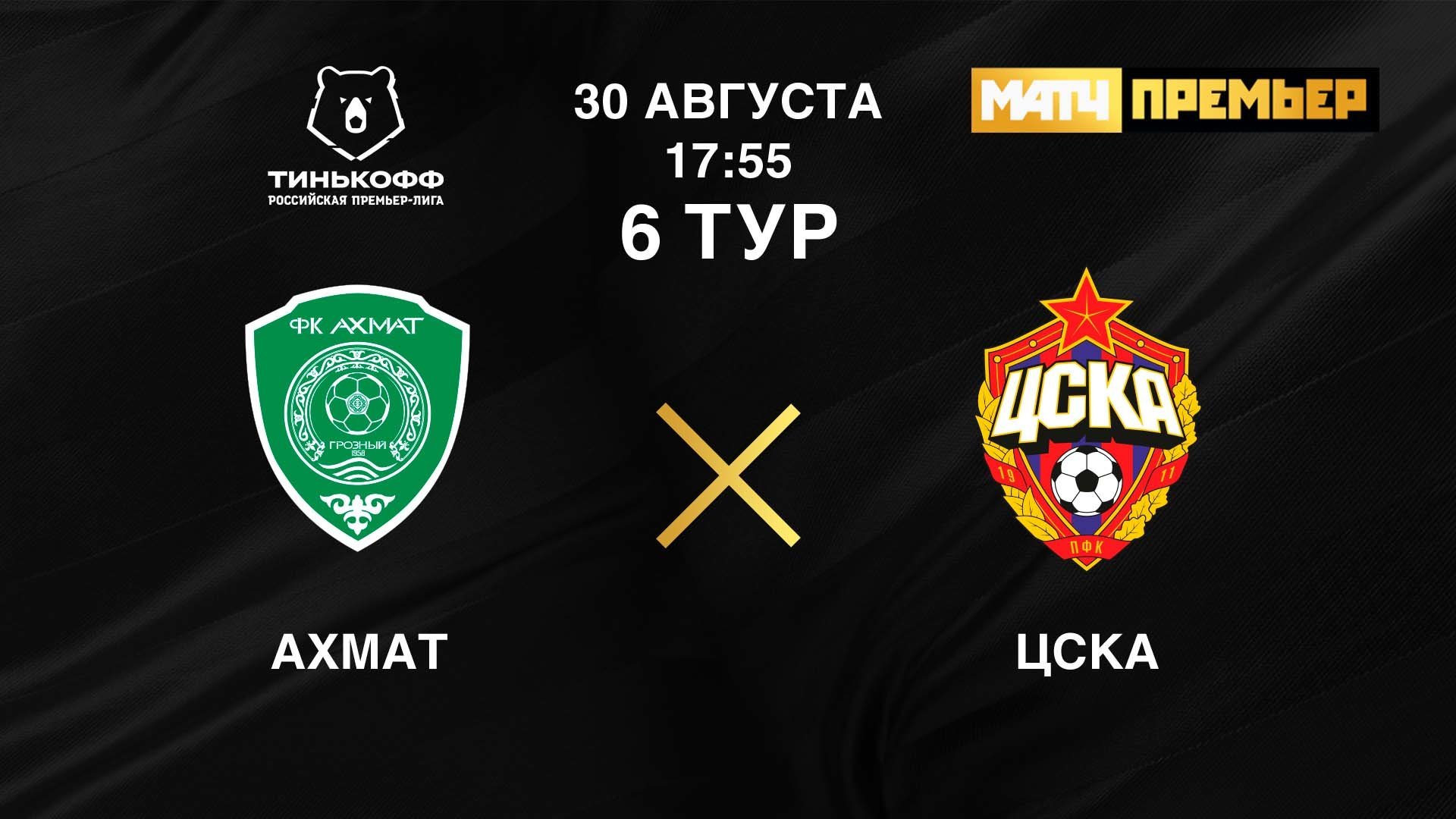 Футбол. Мир Российская Премьер-Лига. "Ахмат" (Грозный) - "ЦСКА" (Москва). Прямая трансляция матча – 30 августа. На ТВ: МАТЧ ТВ и МАТЧ ПРЕМЬЕР. Эфир стартует в 18:00. Онлайн-трансляция доступна на сайте.