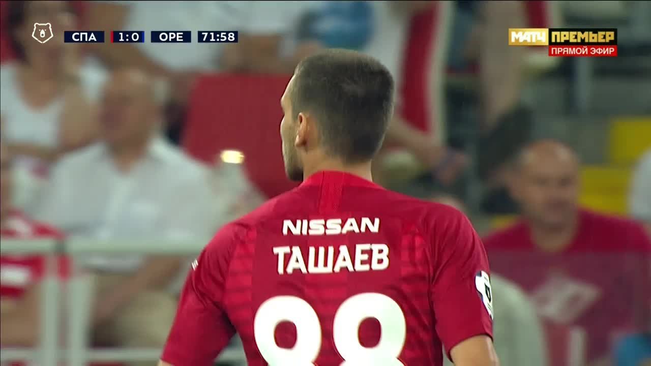 Спартак - Оренбург. Удар Ташаева с дальней дистанции