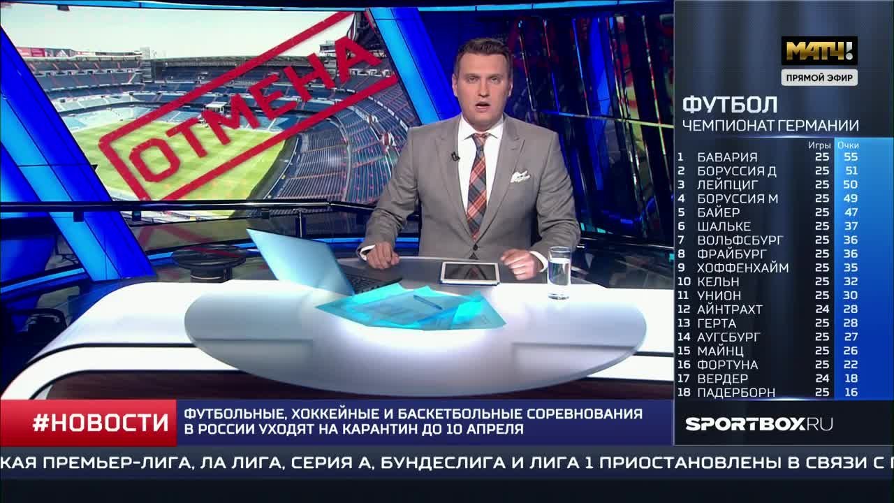 Матчи Тинькофф РПЛ, баскетбол и хоккей отменены до 10 апреля